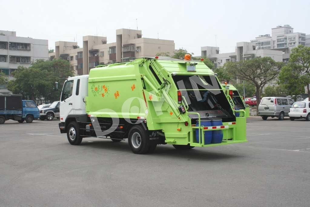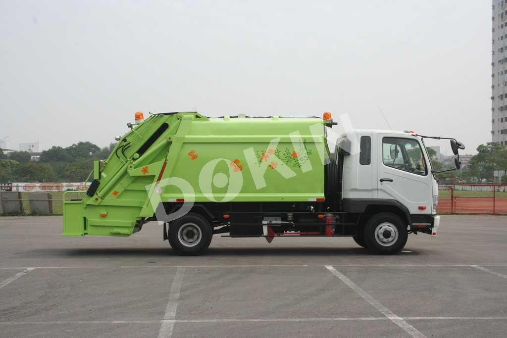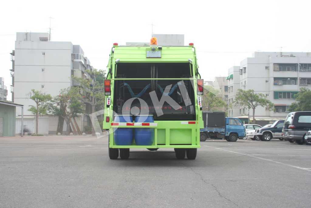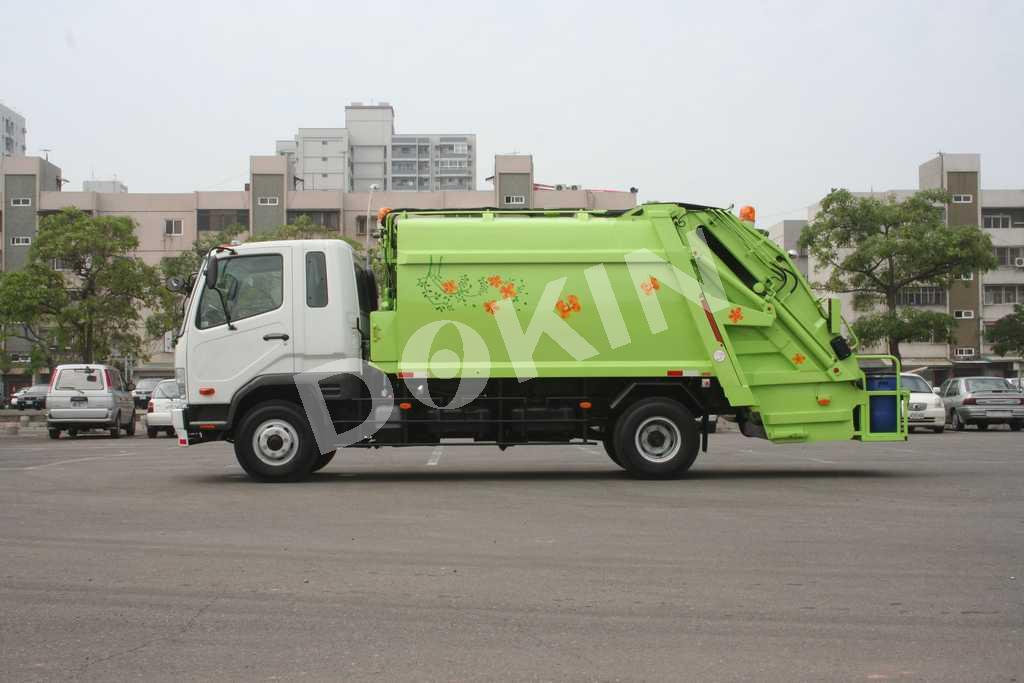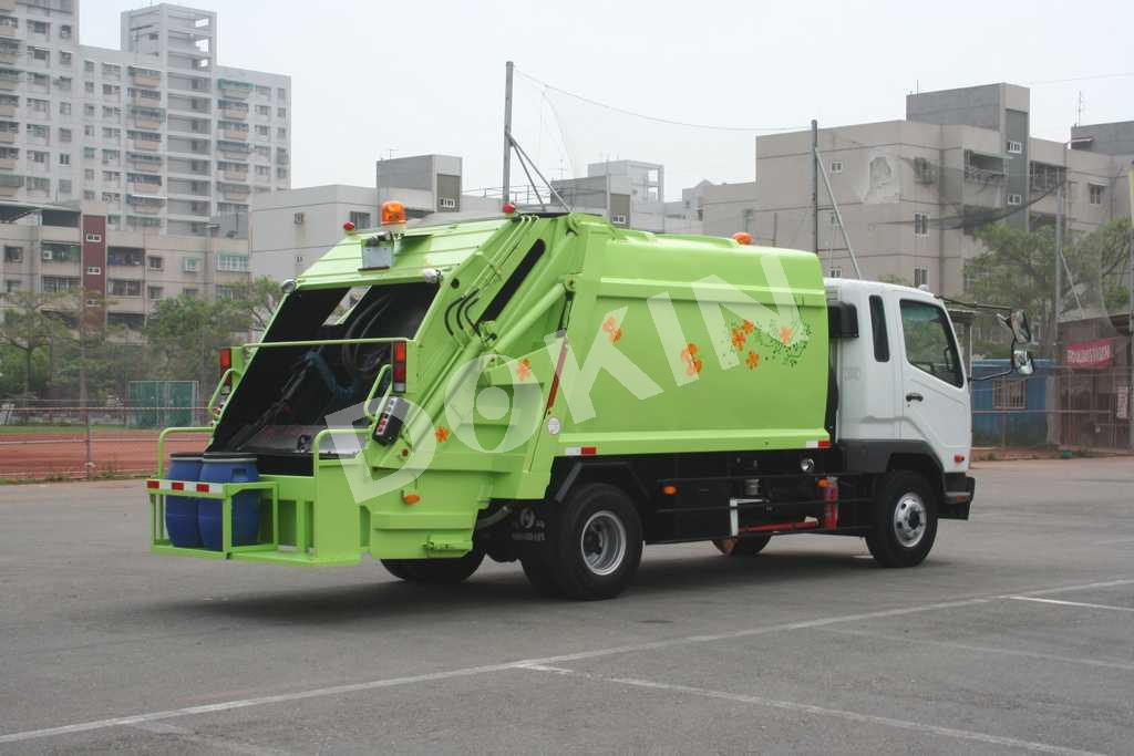 整車為密封式,自行壓縮、自行傾倒、壓縮過程中的污水全部進入污水桶,解決垃圾運輸過程中的二次污染的問題。主要零組件自主設計開發製造,具有壓縮性能大、密封性好、操作方便、安全等優點。