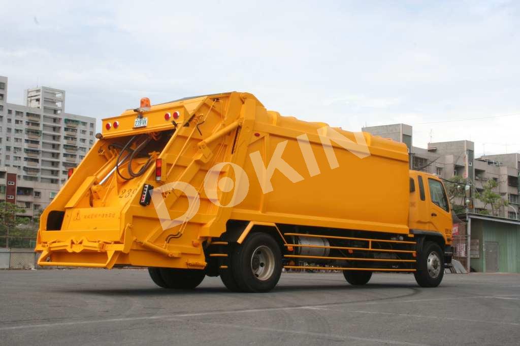 整車為密封式,自行壓縮、自行傾倒、壓縮過程中的污水全部進入污水桶,解決垃圾運輸過程中的二次污染的問題。主要零組件自主設計開發製造,具有壓縮性能大、密封性好、操作方便、安全等優點。
