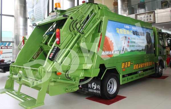 電動壓縮垃圾艙車身,成為台灣第一款高效電動壓縮式油電垃圾車,